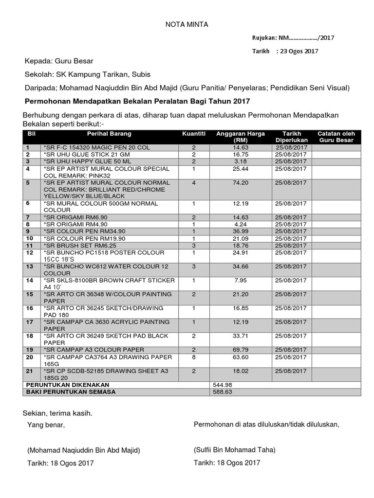 Contoh Nota Minta Sekolah Rendah Pdf
