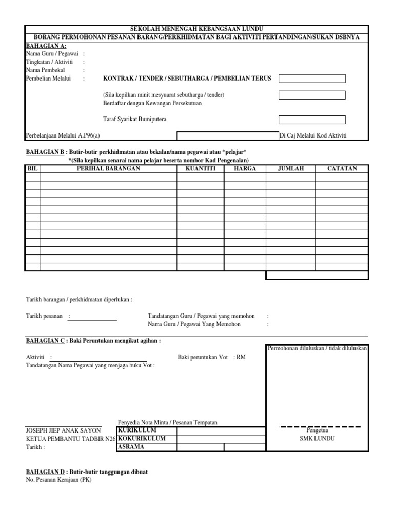 Contoh borang nota minta bekalan bahan mentah prasekolah. Adapun surat rekomendasi sekolah biasanya diberikan kepada guru ataupun siswa demi kepentingan guru atau siswa. Tatacara Pengurusan Perakaunan Kumpulan Wang Sekolah.