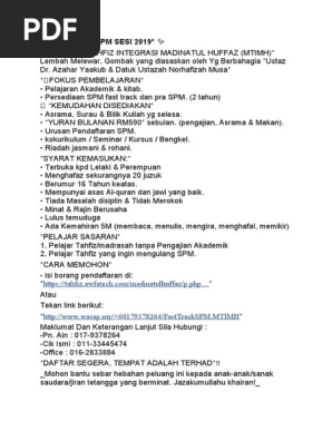 Permohonan Masuk Fast Track Spm 2020 Daftar Segera Madrasah Al Quran At Tanwiriah